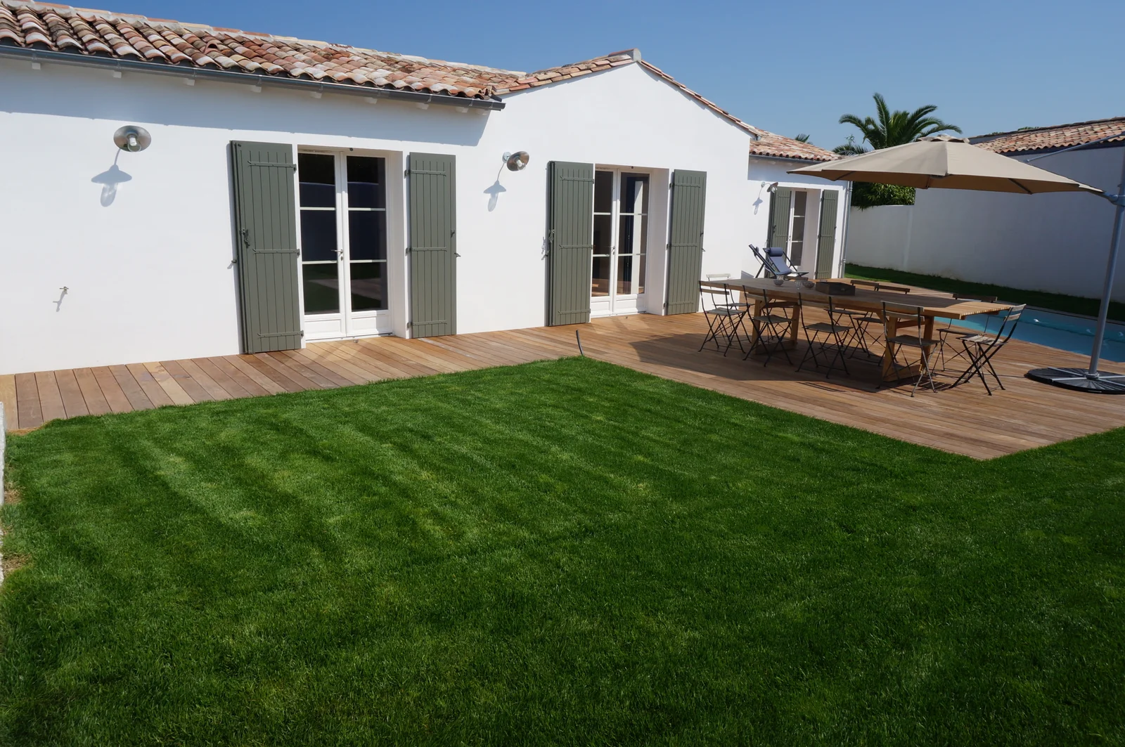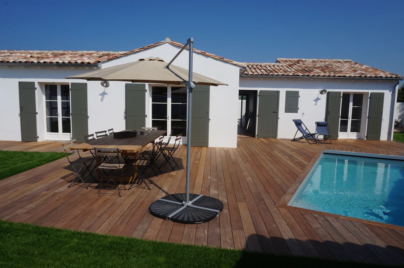 La Résidence de 5 pièces de Béatrice & Loic. Belle résidence de 5 pièces et sa piscine construite sur Ile de Ré. Terrain de 420 m². Maison conforme à la RT 2012. Chauffage pompe à chaleur.