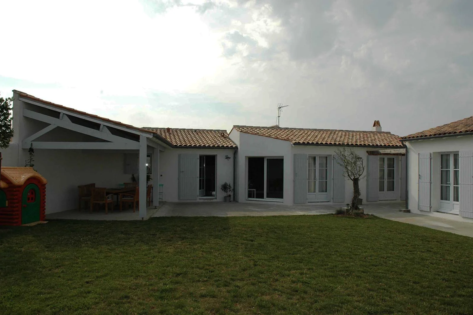 La résidence principale 5 pièces d’Olivier. Maison de style rétais de 128 m² construite à Marsilly à 10 min de La Rochelle. Elle se compose de 3 chambres, 2 salles de bains et une lingerie. Terrasse couverte de 20 m² sur l’arriere de la maison très ensoleillée.