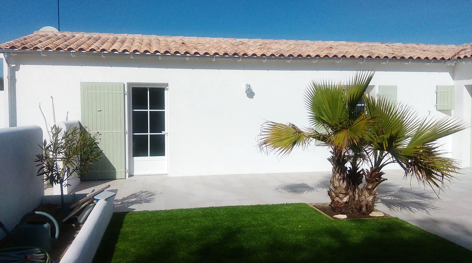La maison 3 pièces de Guillaume & Emmanuelle. Maison de style rétais de 98 m² construite à Rivedoux Plage sur un terrain de 400 m². Equipée d’un pompe à chaleur répondant à la RT 2012.